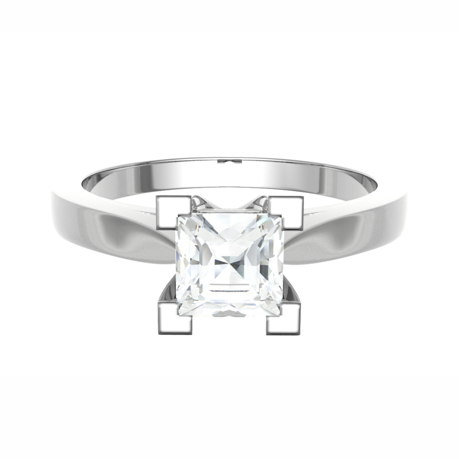 No one will be able to ignore this stunning gold diamond engagement ring, which has plenty of flair and brilliance! The engagement ring is sterling white gold and includes a square-cut stone in the centre, with a polished shank. Milgrain decoration runs the length of the ring's shank, giving it depth and character. This silver diamond ring is a lovely start to your loving relationship.